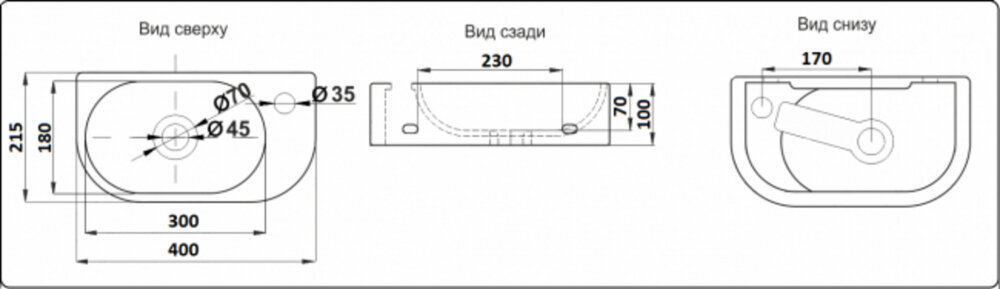 Раковина CeramaLux N, 40 х 21 см, подвесная/накладная, белая, 78204L