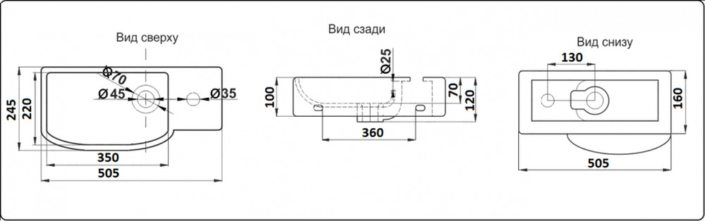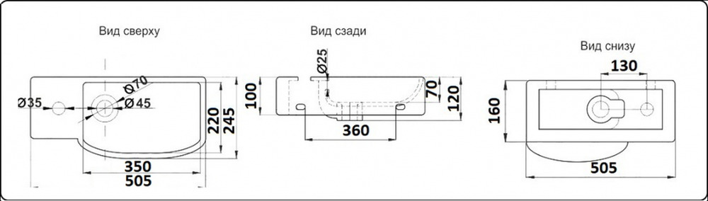 - Внутренние размеры чаши (ШГВ): 35 х 22 х 7 см