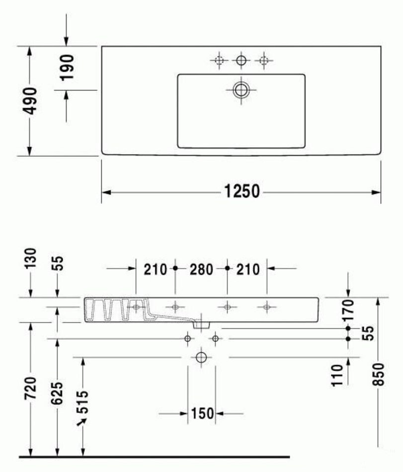 Раковина для мебели Duravit Vero 0329120000, 125 х 49 см