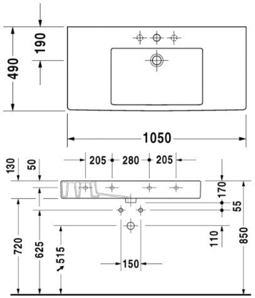 Раковина Duravit Vero 0329100000, 105 х 49 см