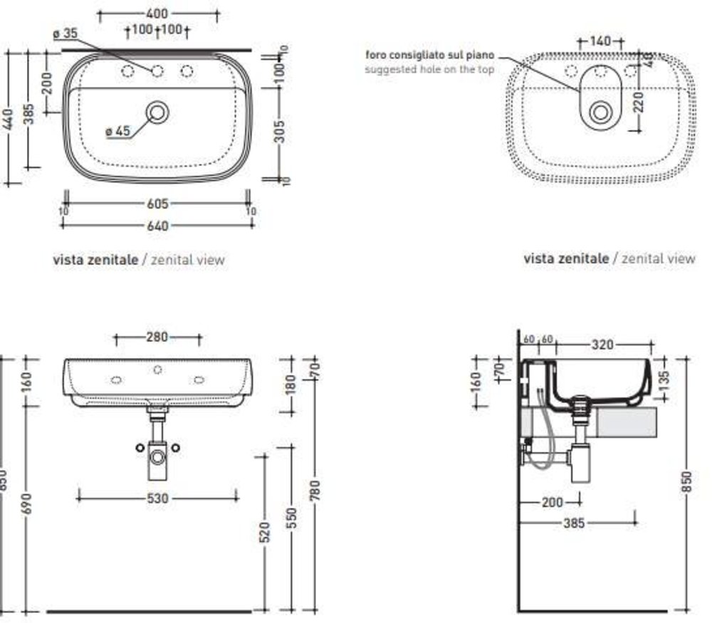 - Без отверстия перелива