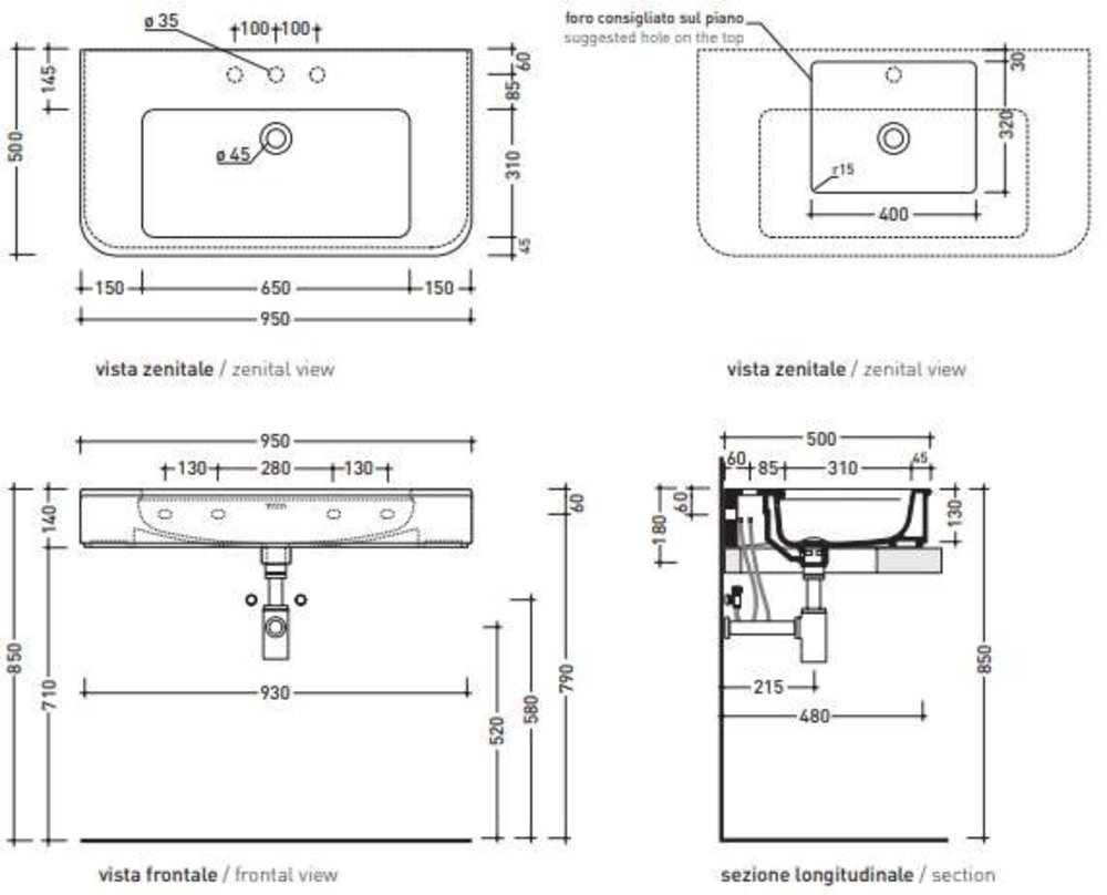 Раковина Flaminia Madre MA95L 95 см, цвет белый