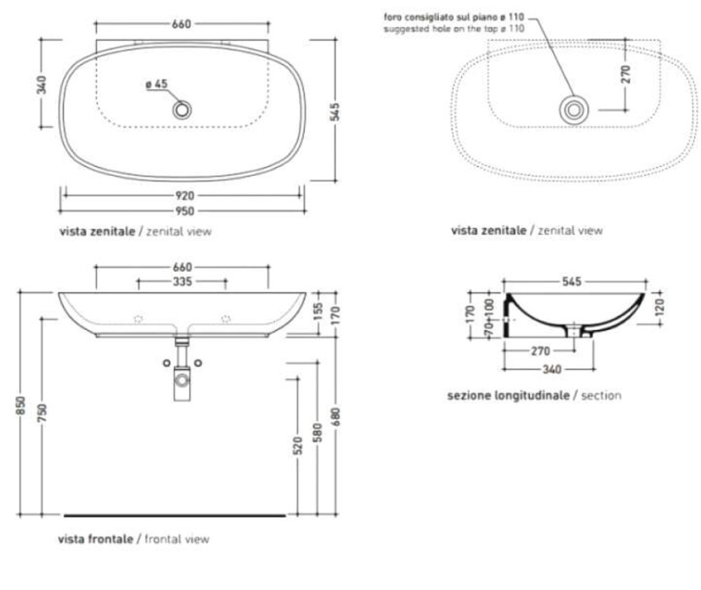 Раковина Flaminia Nuda 5082 95 см, цвет белый