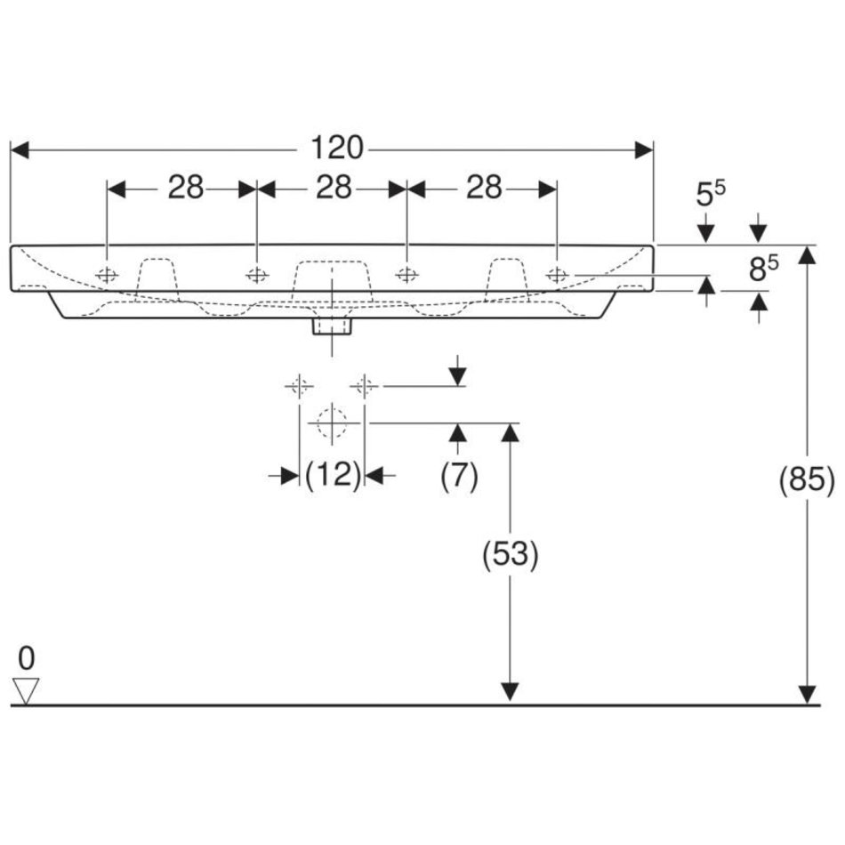 Раковина Geberit Smyle Square 500.225.01.1, 120 х 48 см, белая