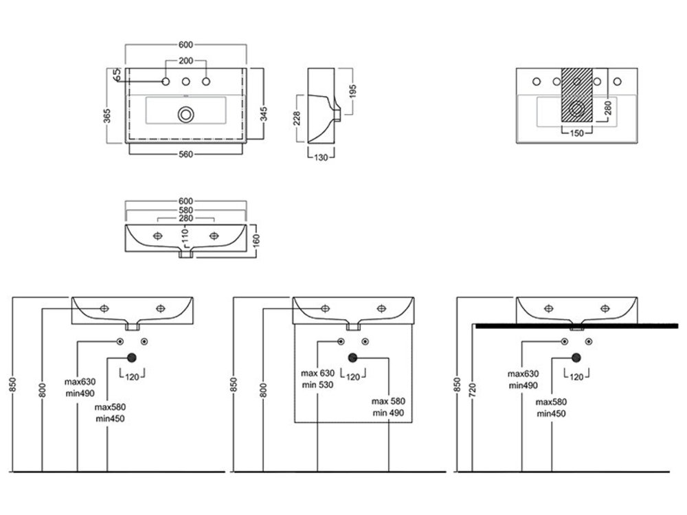 Раковина Hatria Bahia 60 x 36.5 см, BH0600365011TS0, подвесная, белый