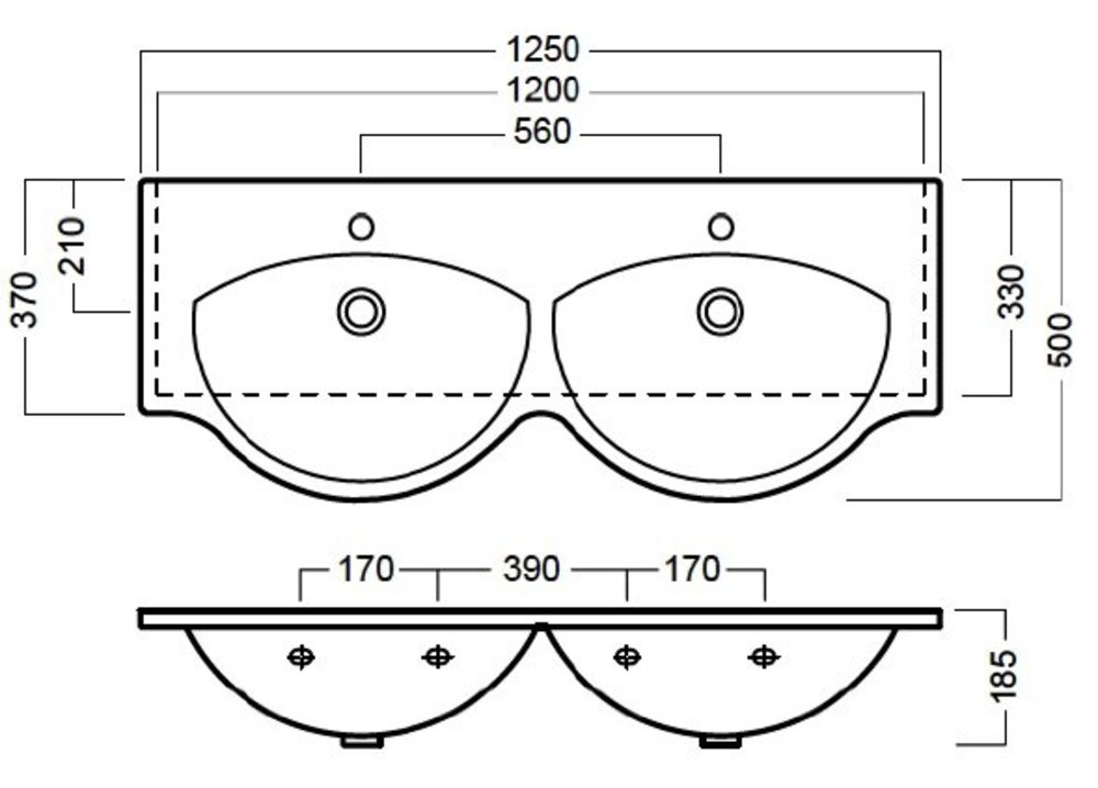 Раковина Hatria Sophie Y0Q5 01 125 см двойная