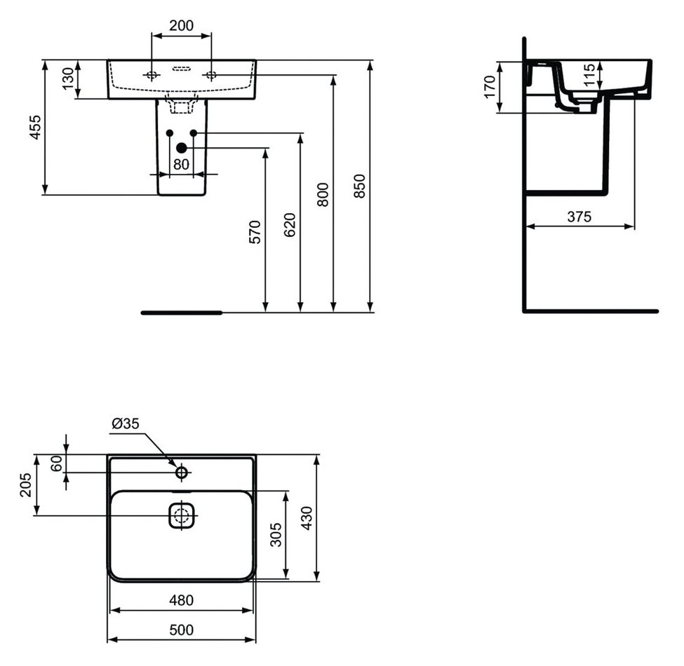 - Для монтажа с полуколоннами или дизайн-сифонами