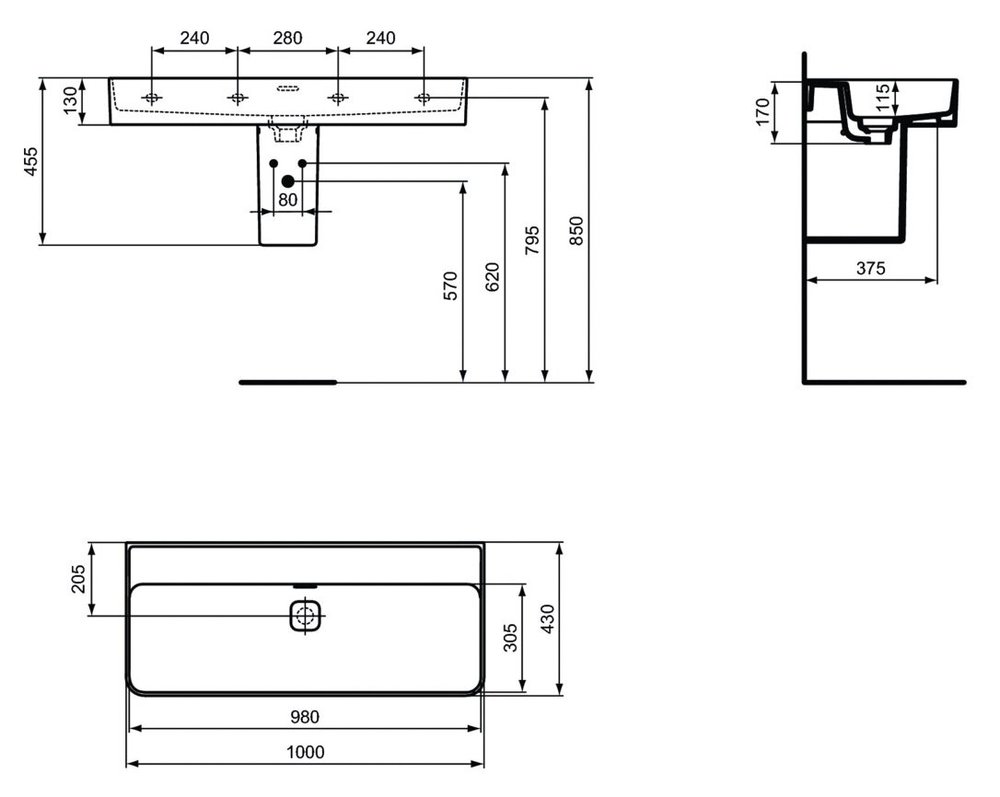 Раковина Ideal Standard Strada II 100 см, белый, T364001