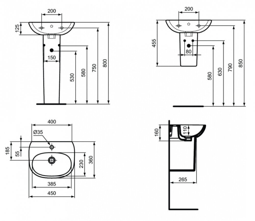 Раковина Ideal Standard Tesi T352401 45 см, тонкий бортик, белый