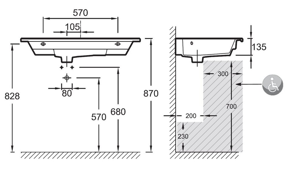 - Форма: прямоугольная, чаша круглая