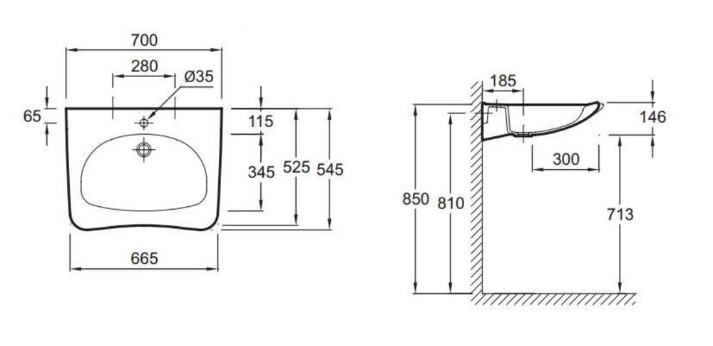 Раковина Jacob Delafon E1980-00, для людей с ограниченными возможностями, 70 х 54,5 см