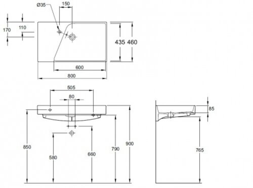 - Отверстия под смеситель