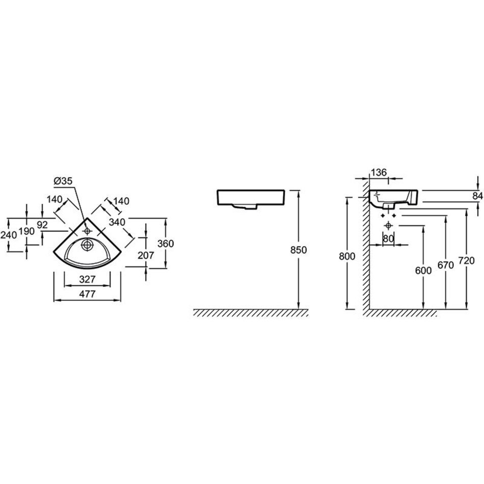 Раковина Jacob Delafon Odeon Rive Gauche угловая, 34 х 34 см, белая, EGP112-00