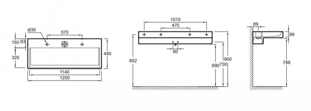 - Два отверстия для смесителя справа и слева