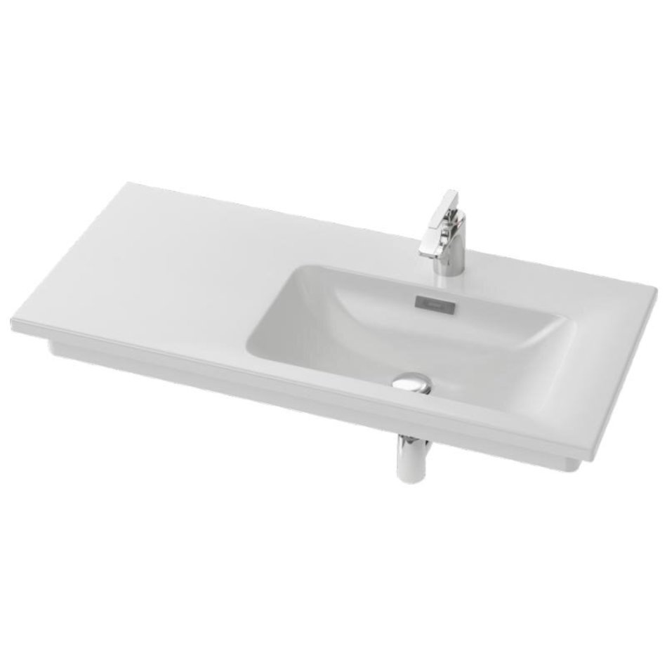 - Широкие полочки, большая и глубокая раковина с мягкими краями без острых углов для легкой очистки