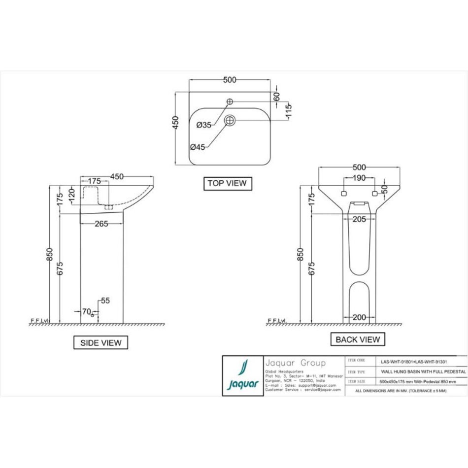 Раковина Jaquar LAS-WHT-91801, 50 см, фарфор, цвет белый