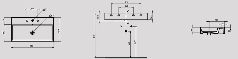 Раковина керамическая Tecla by Cezares Twenty TW05011, 81 х 46 см, чаша в центре, белый