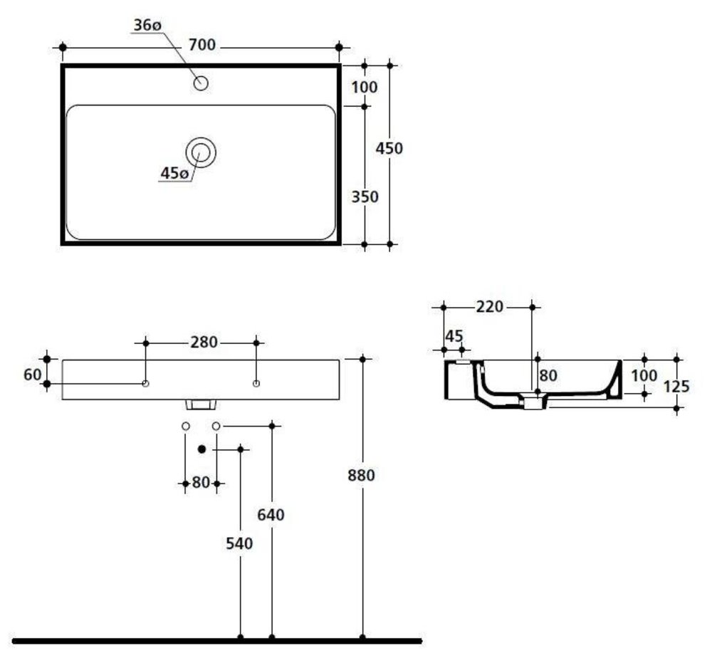 Раковина Kerasan Cento 70 х 45 см, керамика, подвесная/накладная, белый, 353201*1