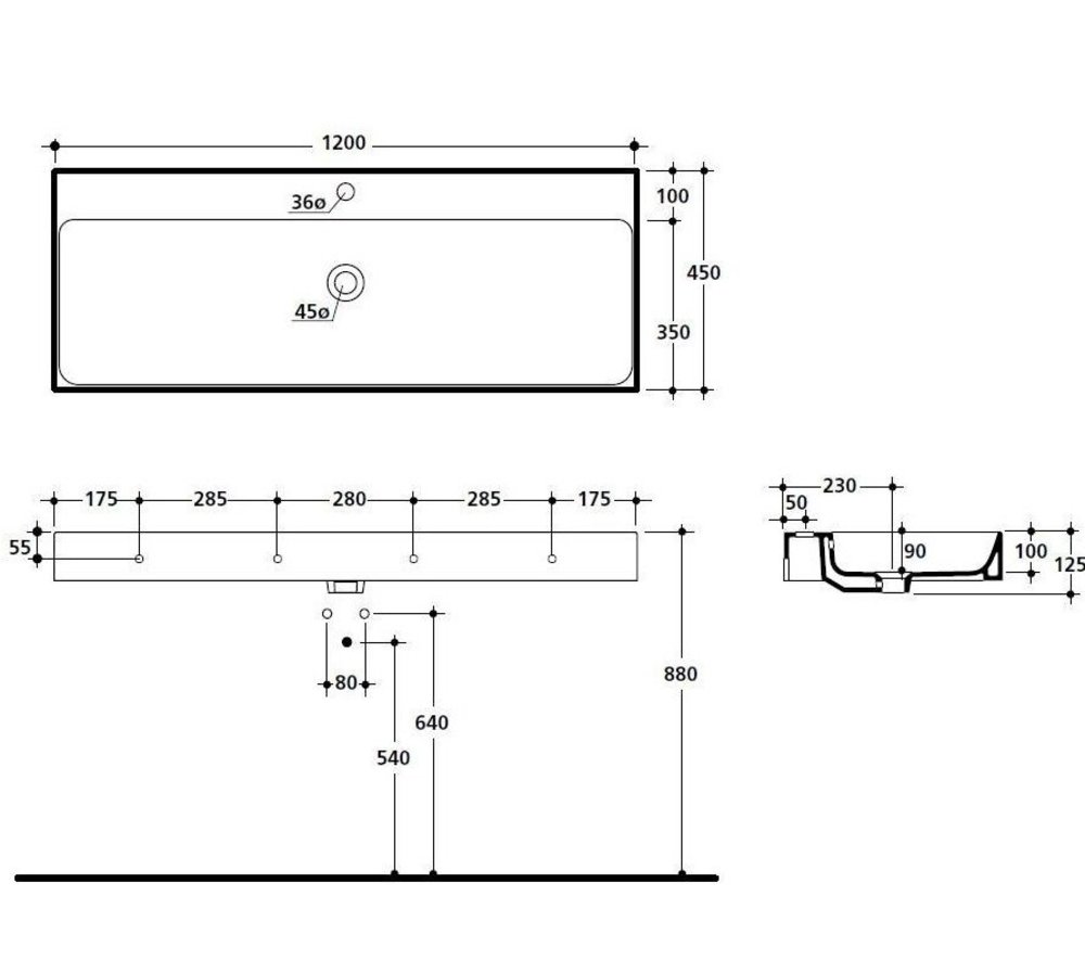 Раковина Kerasan Cento 120 х 45 cм, цвет белый, 353401*1