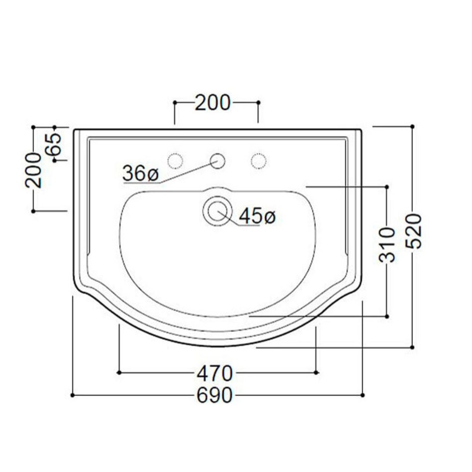 Раковина Kerasan Retro 69 х 52 см, 3 отверстия под смеситель, цвет белый, 104601*3