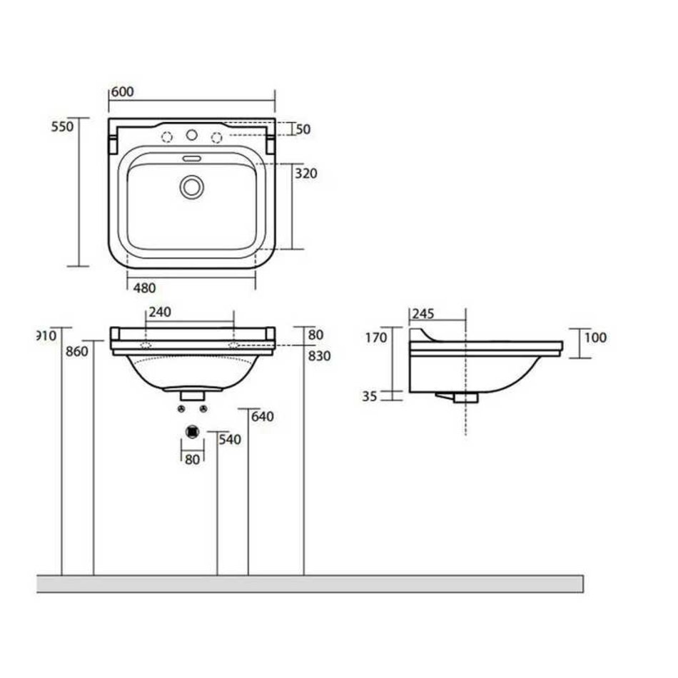 Раковина Kerasan Waldorf 4140K1bi/cr*1, 60 х 55 см