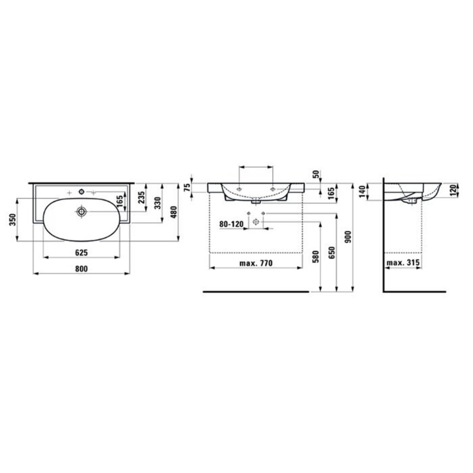 Раковина Laufen New Classic 8.1385.5.400.104.1 80 х 48 х 16.5 см, подвесная, белый