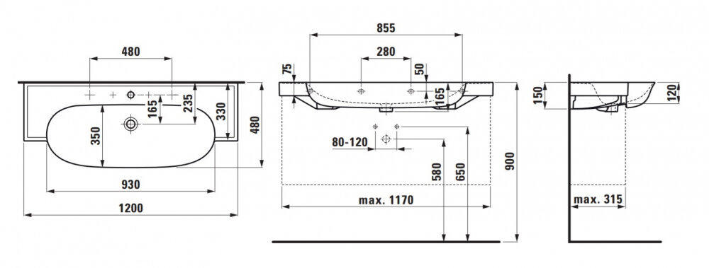 Раковина Laufen New Classic 8.1385.8.000.104.1 120 х 48 х 16.5 см, SaphirKeramik, 1 отверстие, с переливом, белый глянцевый