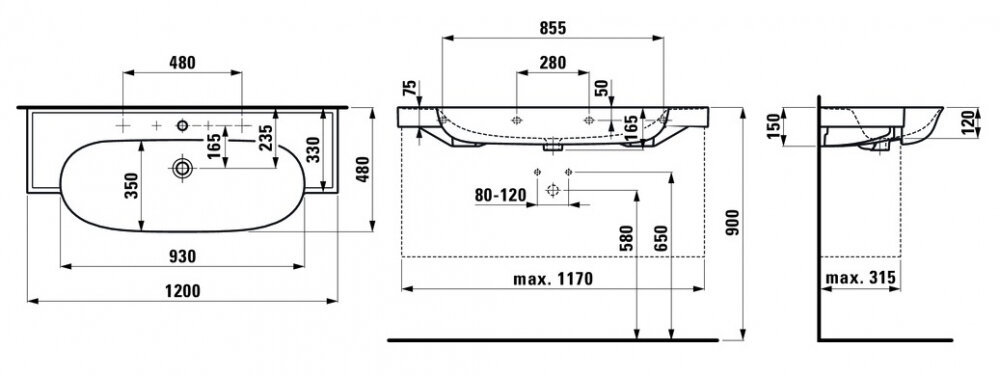 Раковина Laufen New Classic 8.1385.8.000.158.1 120 х 48 х 16.5 см, SaphirKeramik, белый