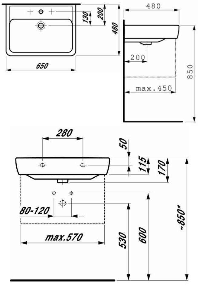 Раковина Laufen Pro 8.1895.3.000.104.1, 65 х 48 см