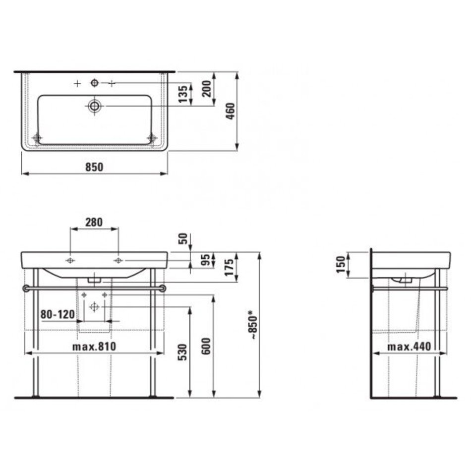Раковина Laufen Pro S 8.1396.5.000.104.1, 85 х 46 см, белый