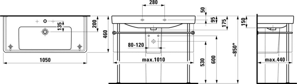 - Отверстия под смеситель