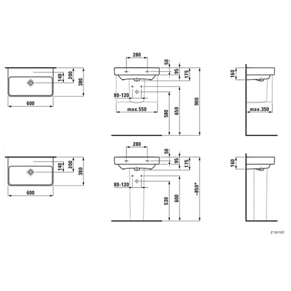 Раковина Laufen Pro S 60 х 38 см, подвесная, цвет белый, 8.1895.9.000.109.1