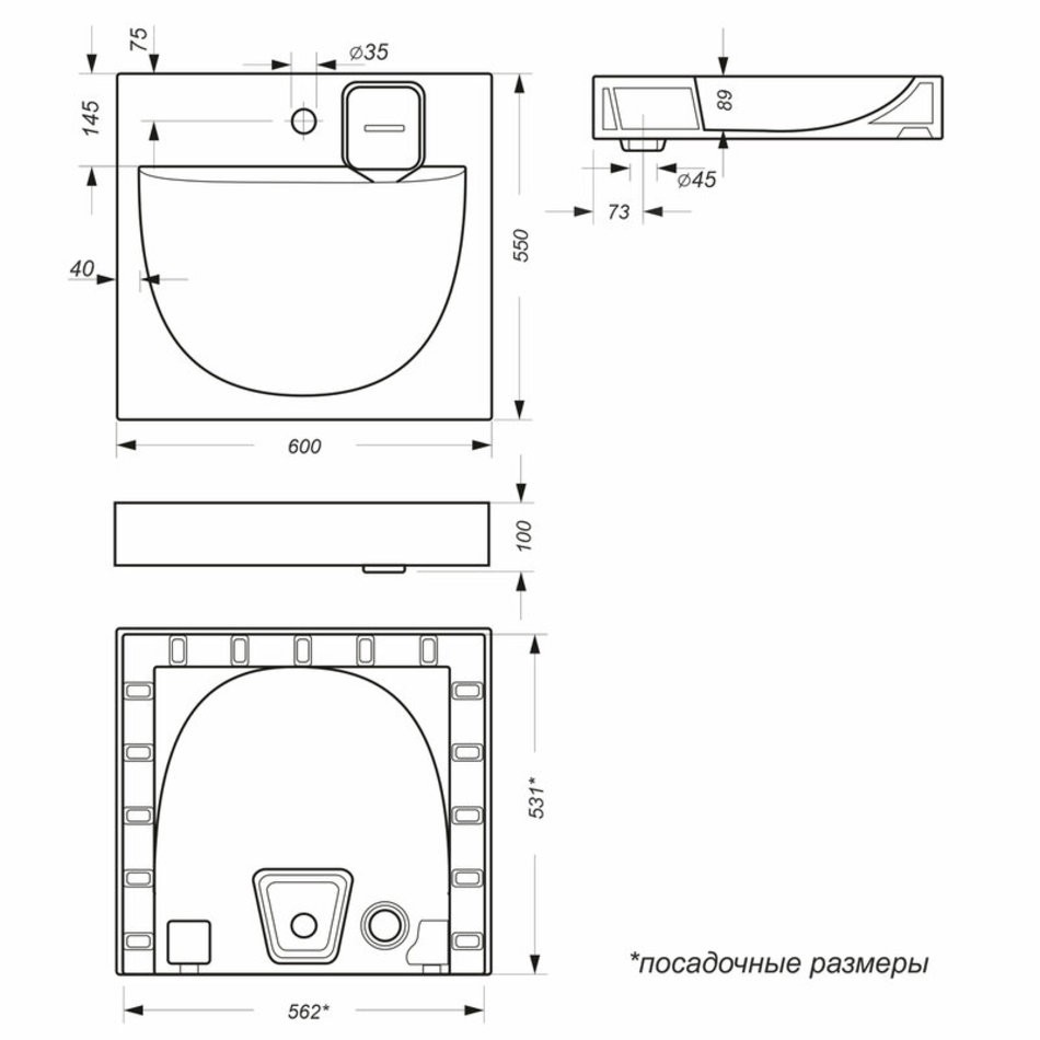 - Отверстия под смеситель