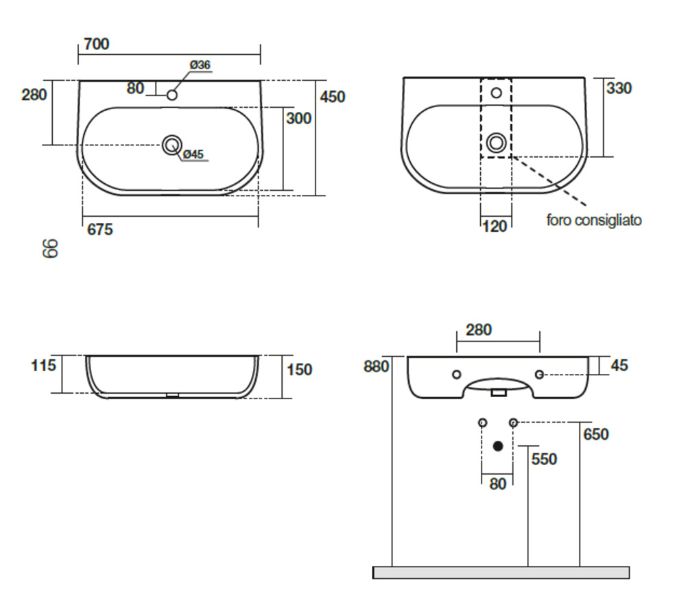 Раковина накладная Kerasan Nolita 534201*1, 70 х 45 см, цвет белый глянцевый