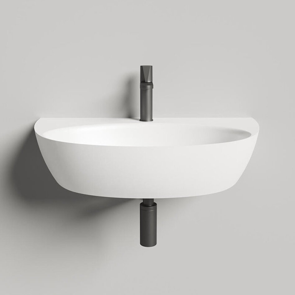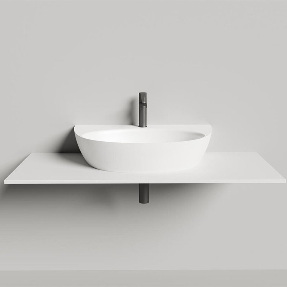 ALDA WALL 03 — пристенная модель раковины с наиболее широкой площадкой под смеситель и глубокой чашей. Возможен подвесной монтаж. Крепеж к стене будет поставляться в комплекте. Также возможен монтаж на столешницу.