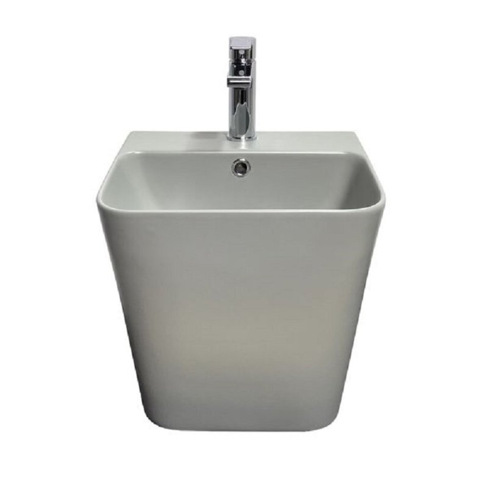 - Подвесная раковина моноблок позволяет скрыть подведенные коммуникации.