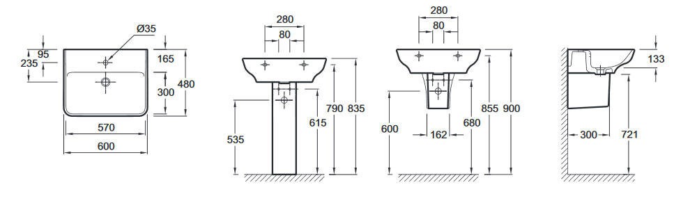 Мягкий,геометрический дизайн, тонкие края. Раковина с гладкой нижней поверхностью для установки на мебель. Мягкие края без острых углов для легкой очистки, глубокая раковина (13 см) уменьшающая количество брызг, широкая задняя полочка.