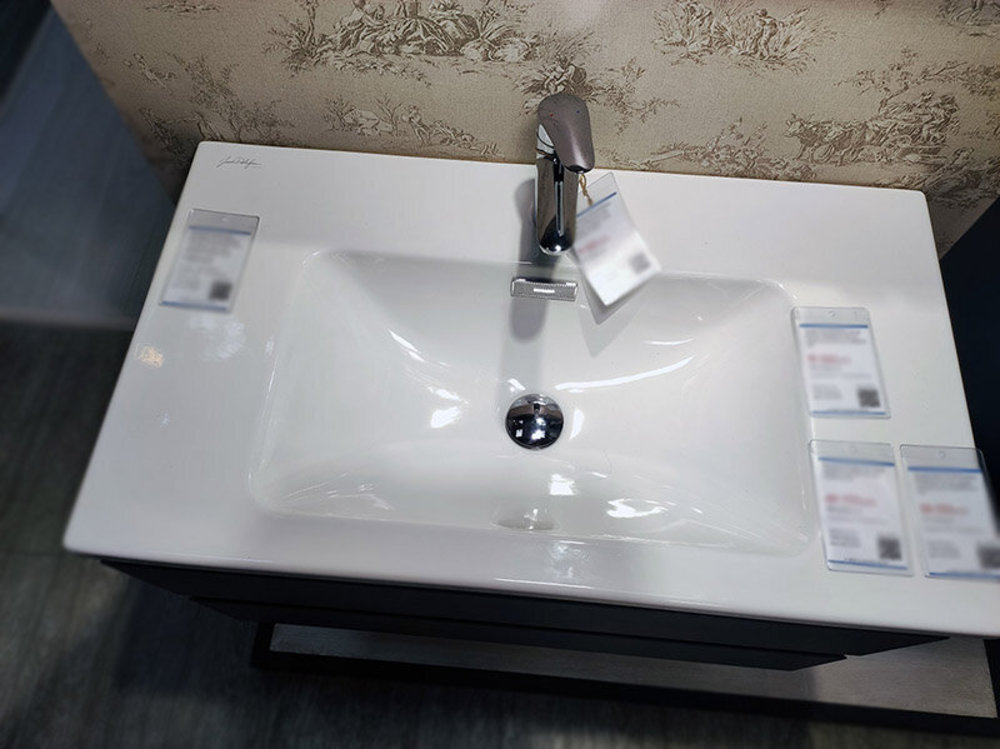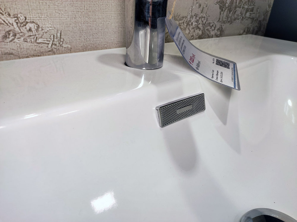 - Широкие полочки, большая и глубокая раковина с мягкими краями без острых углов для легкой очистки