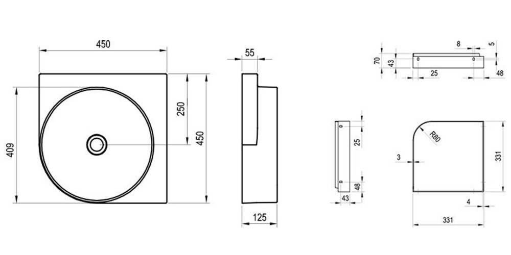 - дополнительные аксессуары: консоль Yard 400, фиксированный слив для умывальника, сифон для умывальника, смеситель