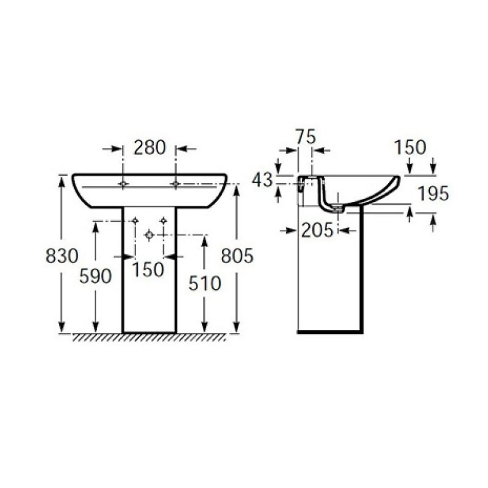 Раковина Roca Dama Senso 327512000, 58 см, с пьедесталом 337510000, цвет белый