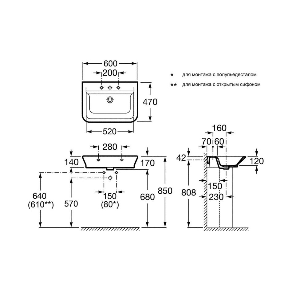 - Для установки на шкафчик, монтажа с пъедесталом или полупъедесталом