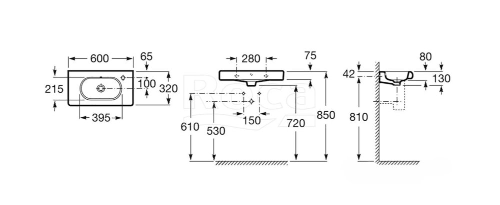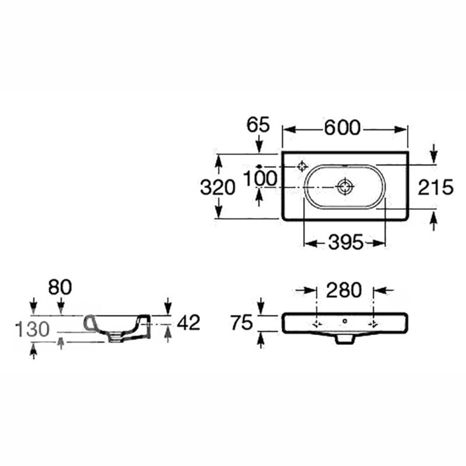 Раковина Roca Meridian-N 32724X000, 60 x 32 см, отверстие слева