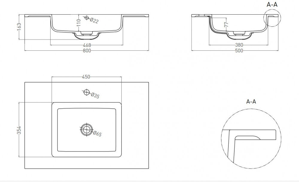 Раковина Salini Onda 1402201M, 80 х 50 х 16,3 см, белый матовый