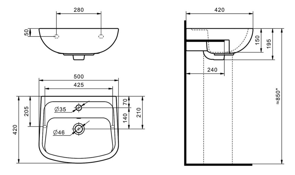 Раковина Santek Лонги 1.WH50.1.754, 50 см, фарфор, подвесная, белый