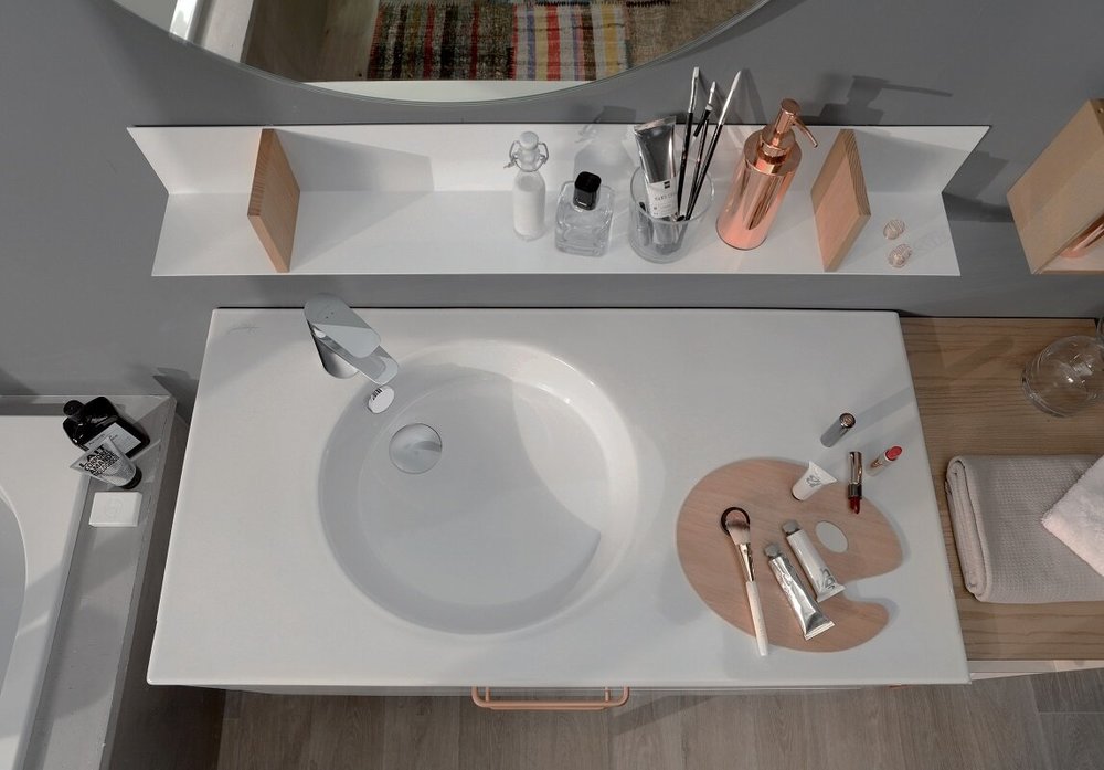 Раковина-столешница с гладкой нижней поверхностью для идеального прилегания при установке на мебель. Диаметр 51 см для максимально комфортного пользования. Глубокая круглая чаша идеально подойдет для всей семьи. Размещение смесителя сбоку упрощает пользование широкой раковиной. Боковая столешница.