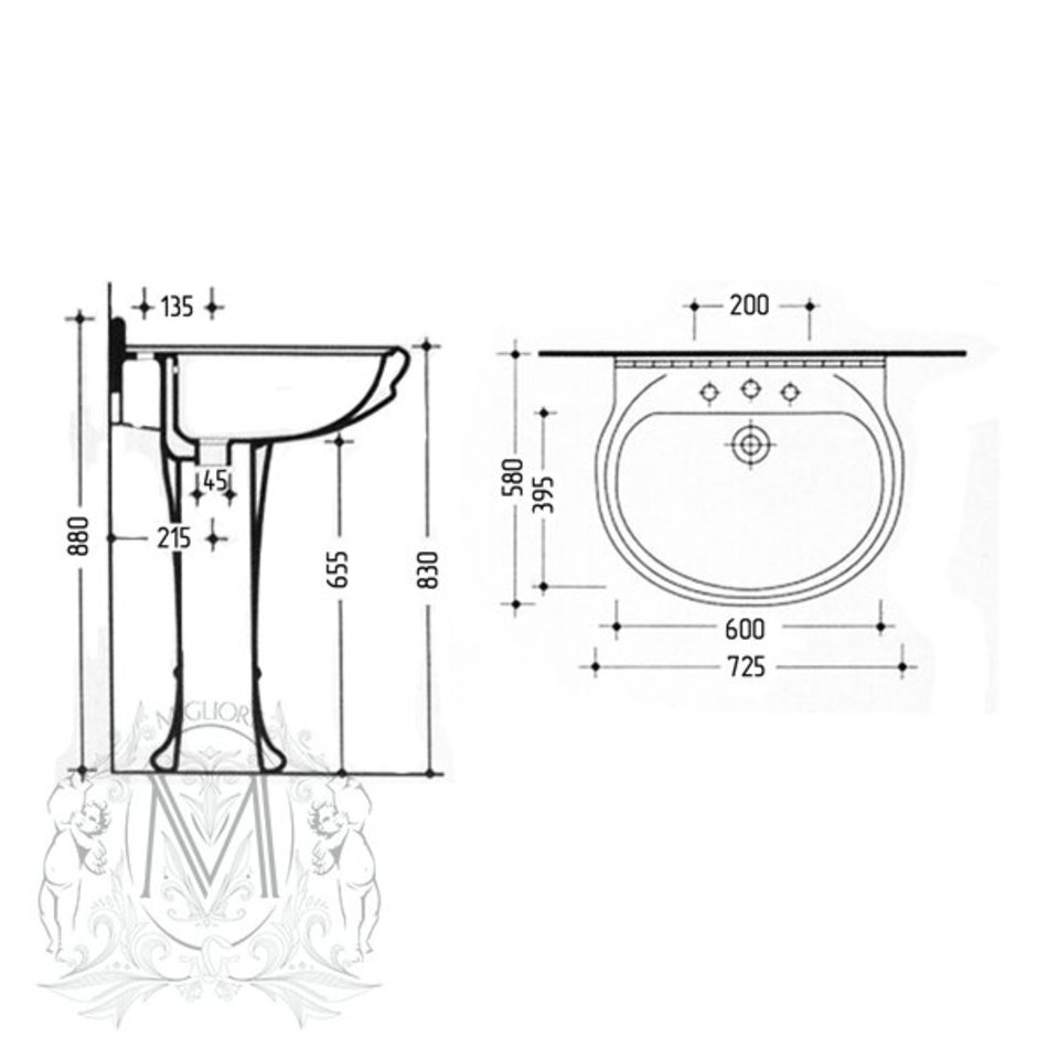 Раковина-тюльпан Migliore Gianeta ML.GNT-25.870D1 с пьедесталом ML.GNT-25.807.D1 Decor Oro