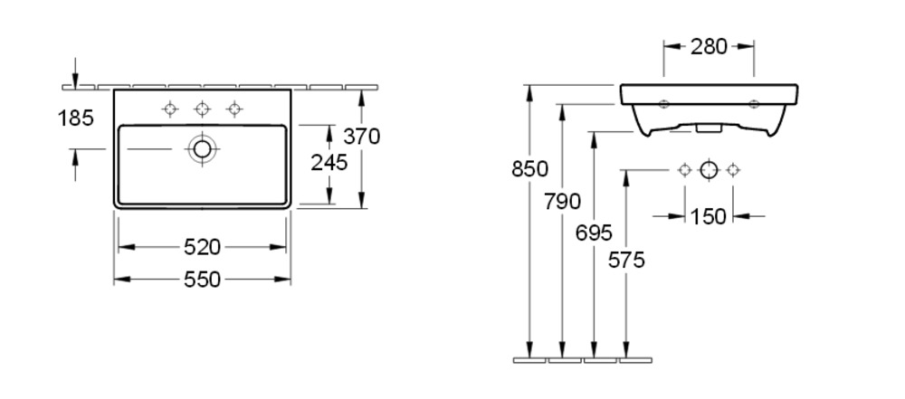 - Отверстия под смеситель
