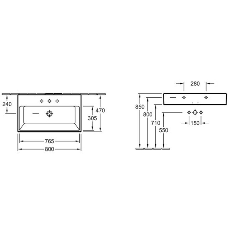 - С 1 отверстием под смеситель, 2 намечено