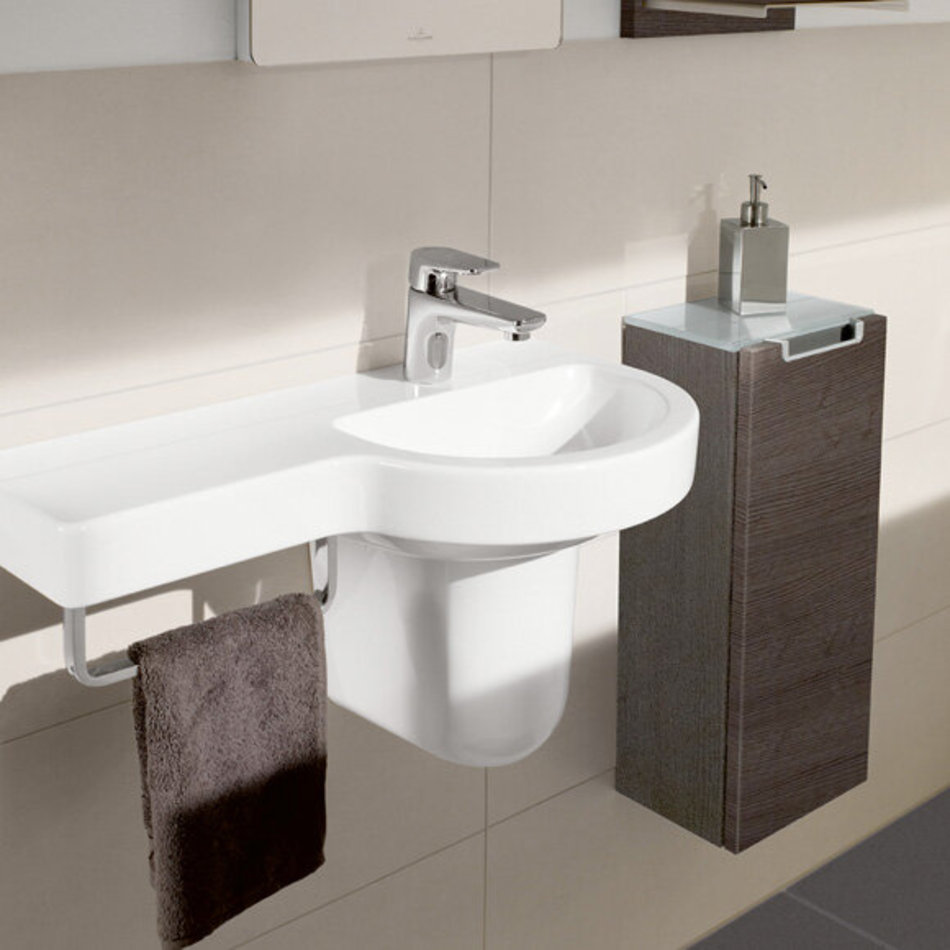 Ступенчатость чётких геометрических форм раковиныSUBWAY находит своё продолжение в красивом полупьедестале, выполненном из высококачественного белого фарфора. Подвесные унитаз и биде делают помещение визуально более просторным.