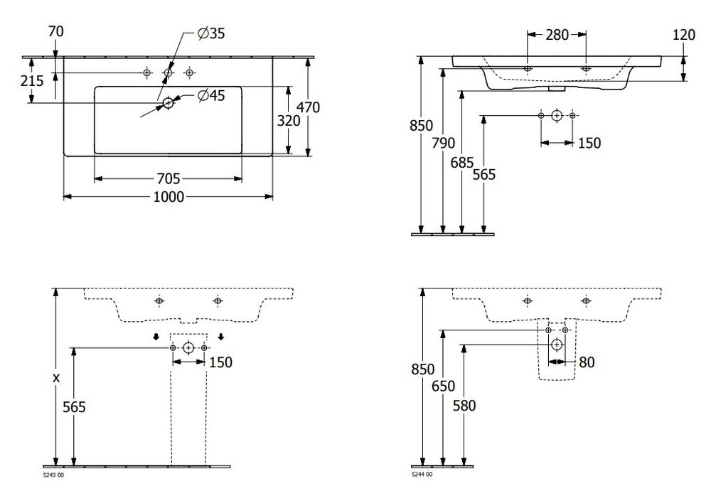 Раковина Villeroy&Boch Subway 3.0, 100 см, альпийский белый, 4A70A501